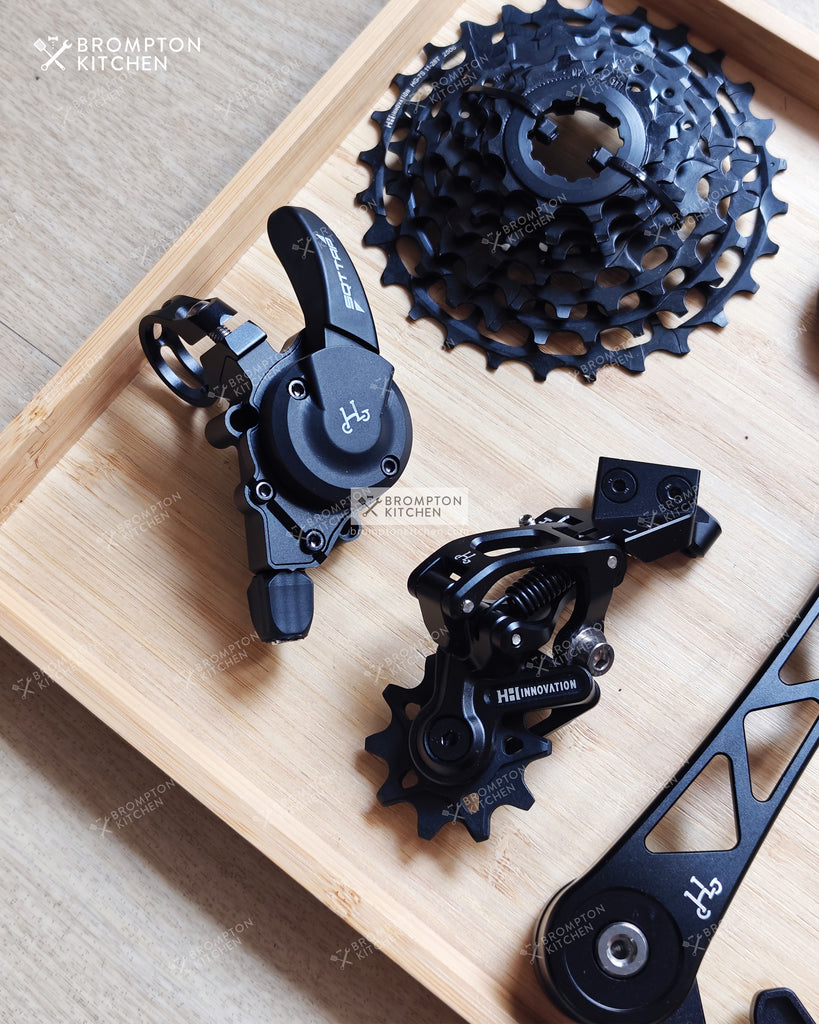 Upgrade your P or T line Brompton 4 speeds to 7 speeds with 11-28T wide ratio cassette.
