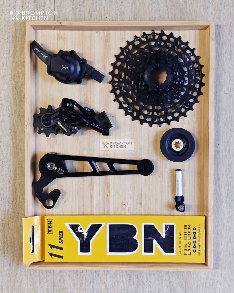 Upgrade your P or T line Brompton 4 speeds to 7 speeds with 11-32T wide ratio cassette.